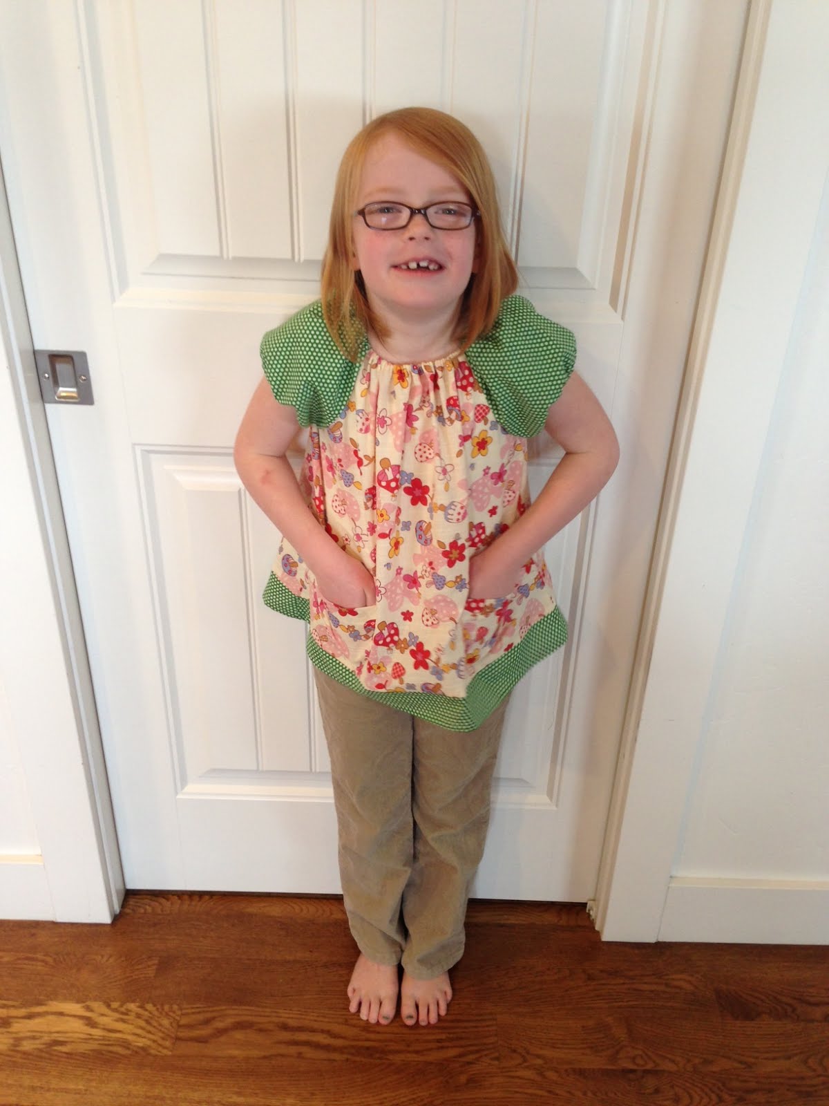 This one fits a little better in the arms and it is a little fuller around the chest. Jane loves her dresses, never mind that it's been snowing for days, it's perfect weather in the house for summer dresses. I might try a shirt next with the same no pattern pattern! I'm just a little bit excited!